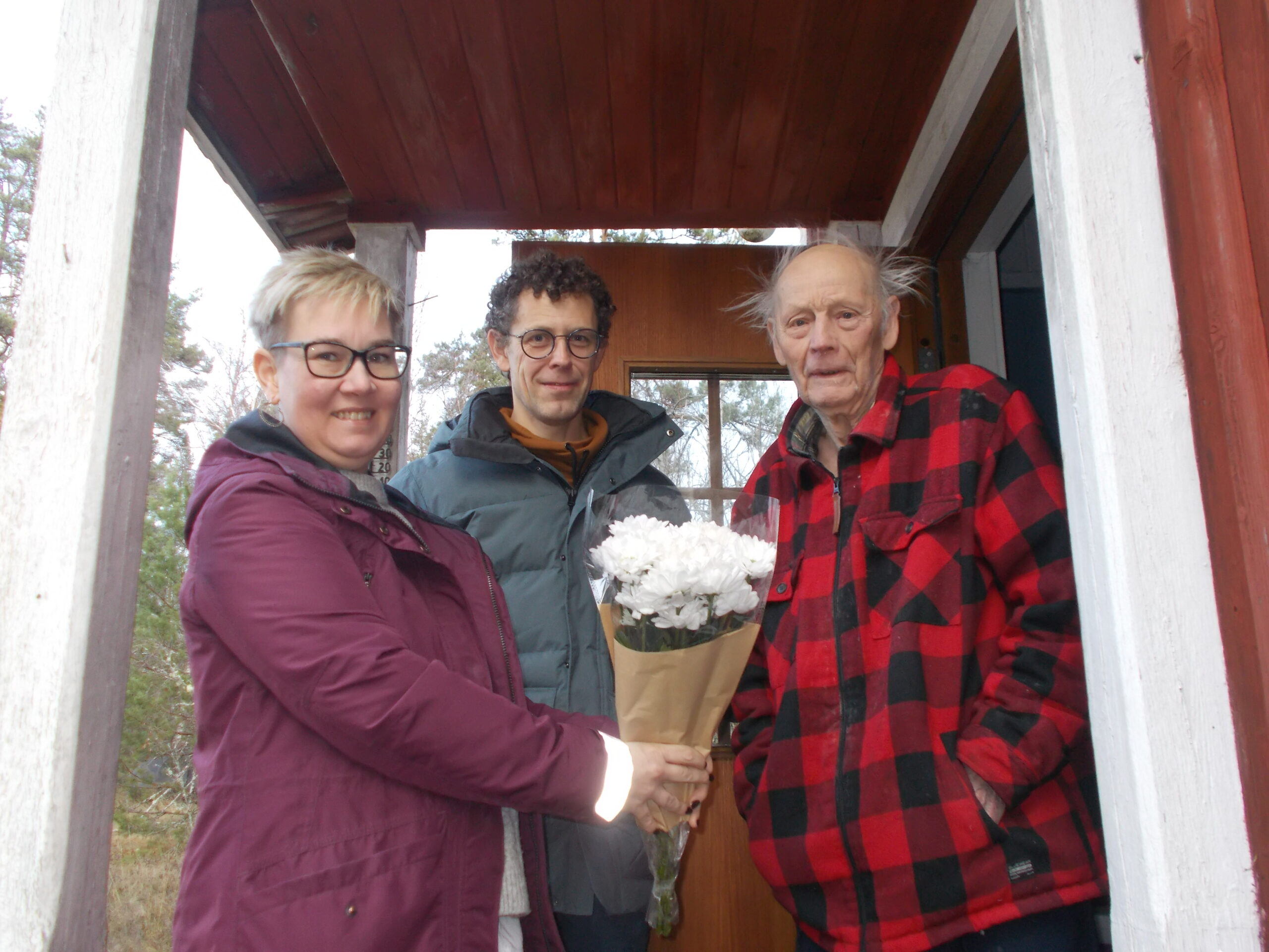 Vår vice ordförande Caroline och vår kassör, tillika skogsansvarig, Ulf besökte Bo Nilsson i Tuna med blommor, diplom och ett pris på 5000:-.